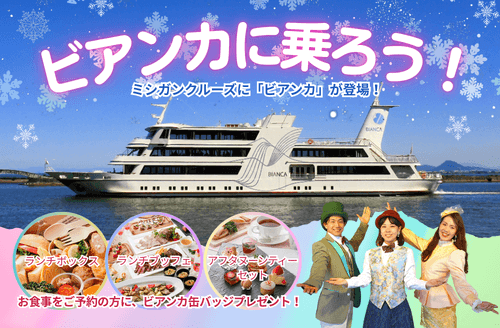 雪化粧した美しい山並みと、びわ湖も穏やかで絶好のクルーズ日和でした。