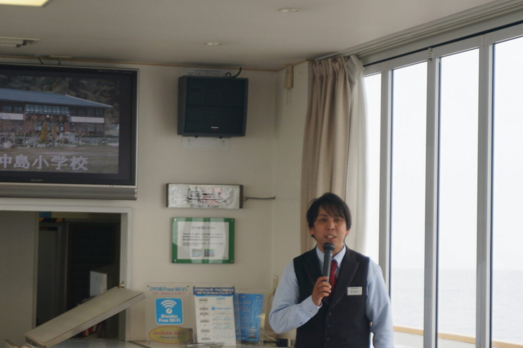 大津港を出港後、ガイドによる軽妙な解説を聞きながら、船は北上していきます。