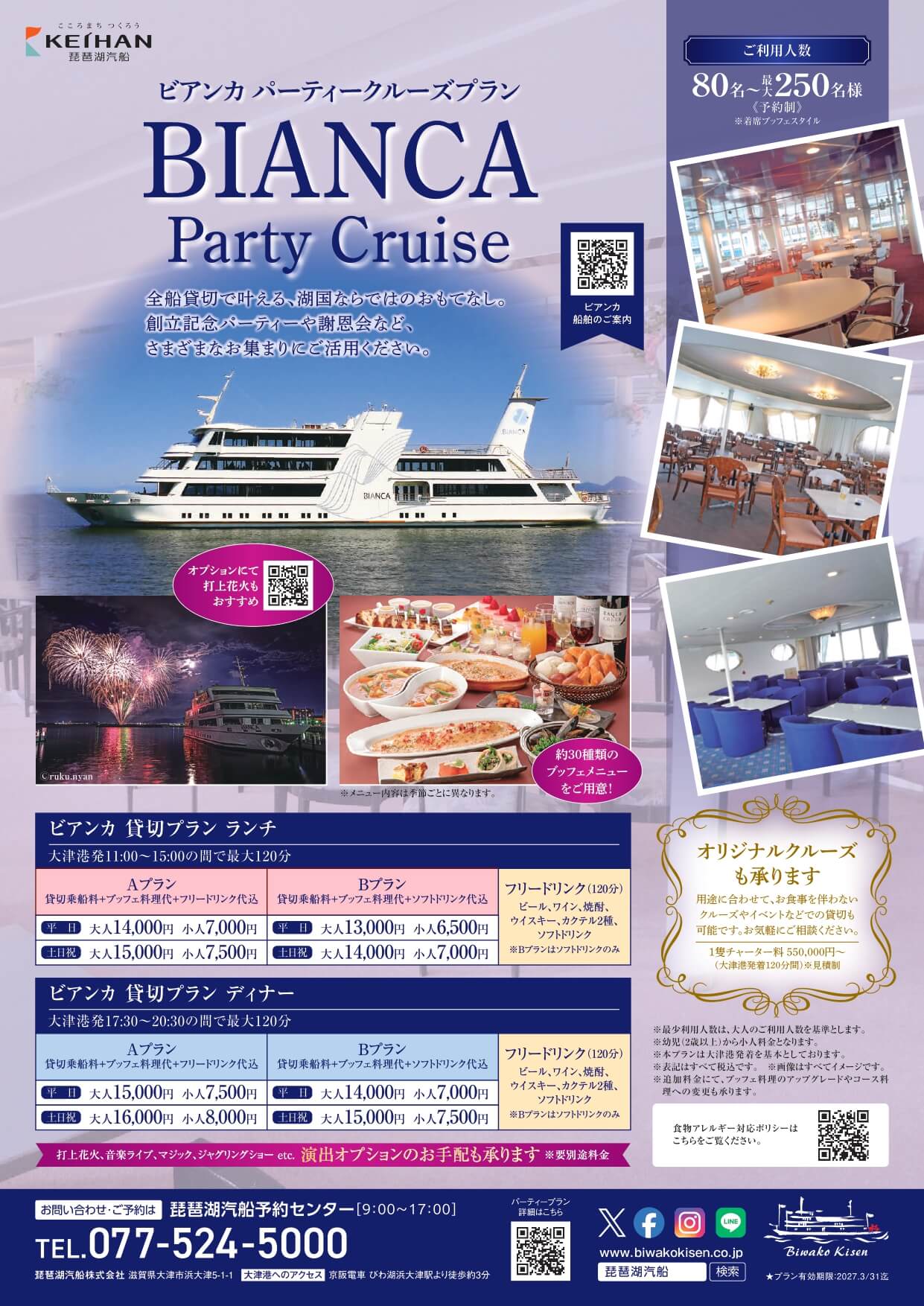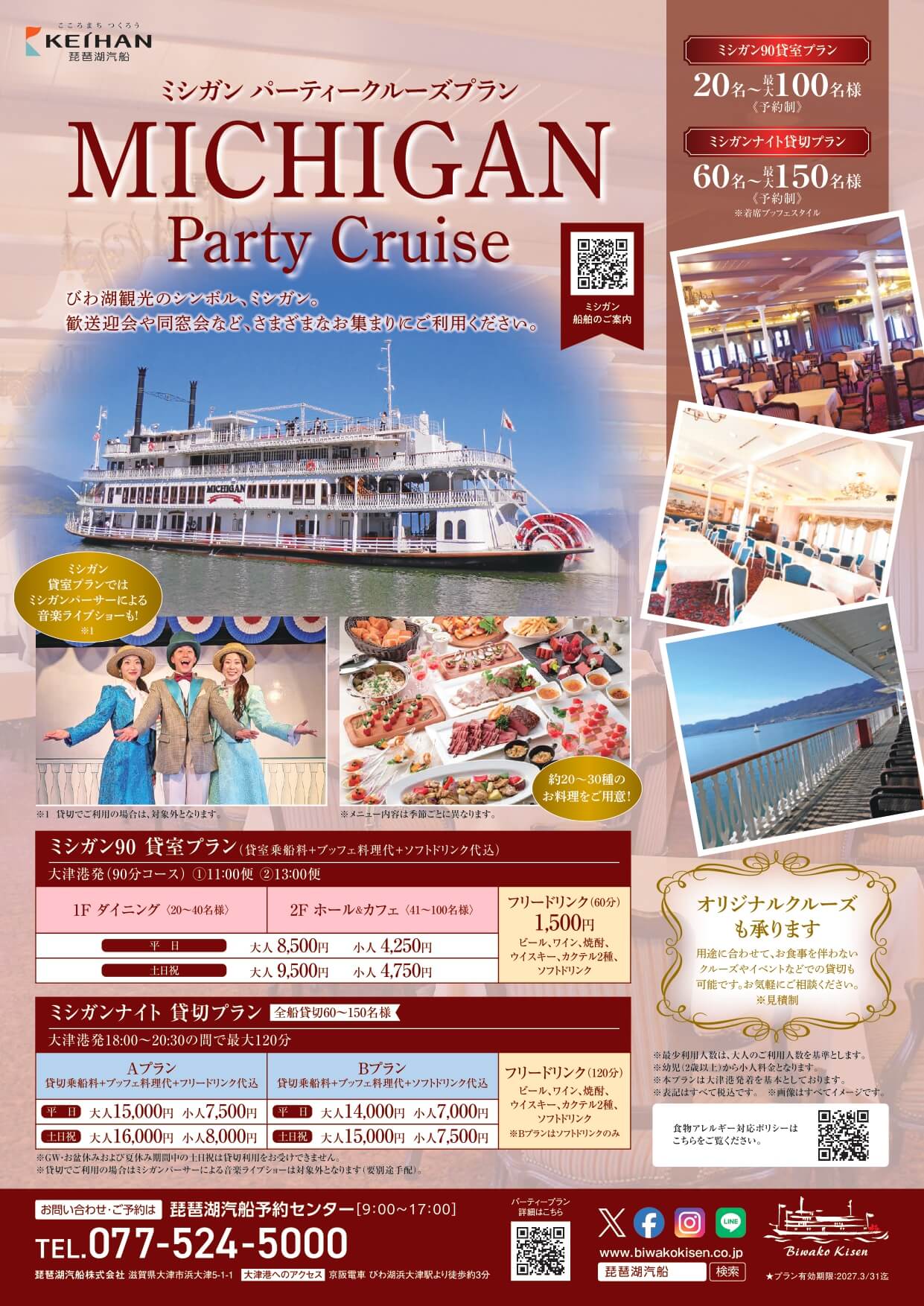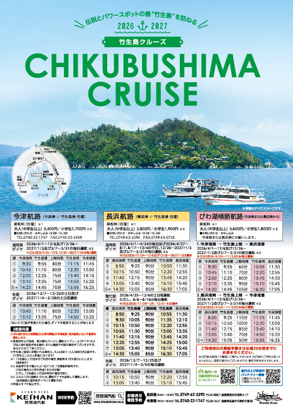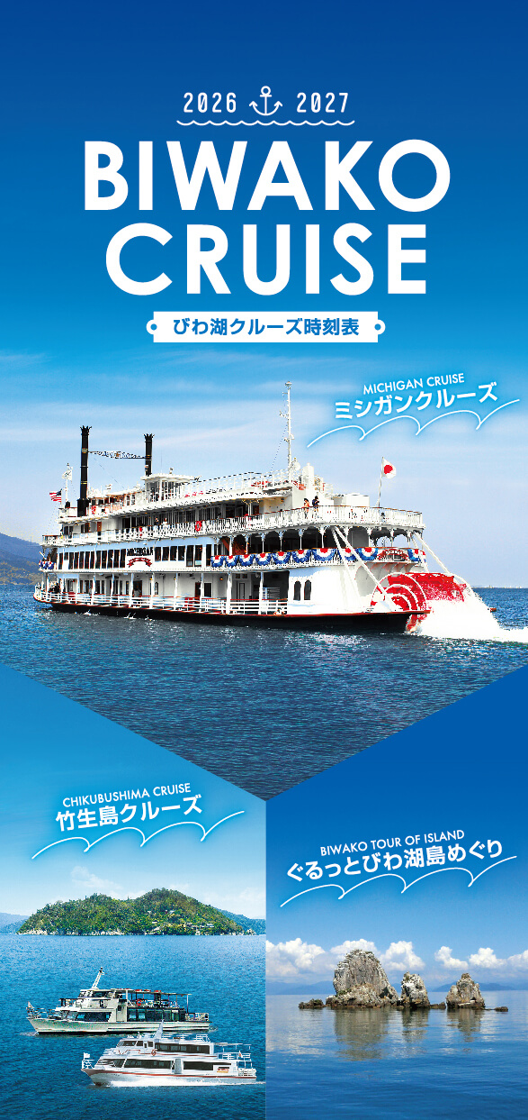 2026年度時刻表 PDF 2026年度クルーズマップ PDF 2026年度ミシガンクルーズA4チラシ PDF 2026年度竹生島クルーズA4チラシ PDF 2026年度ミシガンパーティープラン PDF 2026年度ビアンカパーティープラン PDF 2025年度ぐるっとびわ湖島めぐり PDF ミシガンクルーズパンフレット PDF ビアンカチャータークルーズパンフレット PDF 教育旅行のご案内 PDF 琵琶湖汽船オリジナル御船印 PDF