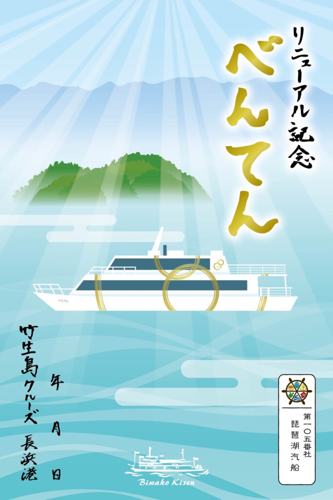 ※べんてんリニューアル記念の御船印は、長浜港から竹生島クルーズにご乗船のお客様限定で販売いたします。 御船印のみの購入はできません。