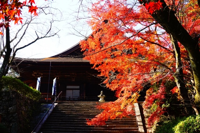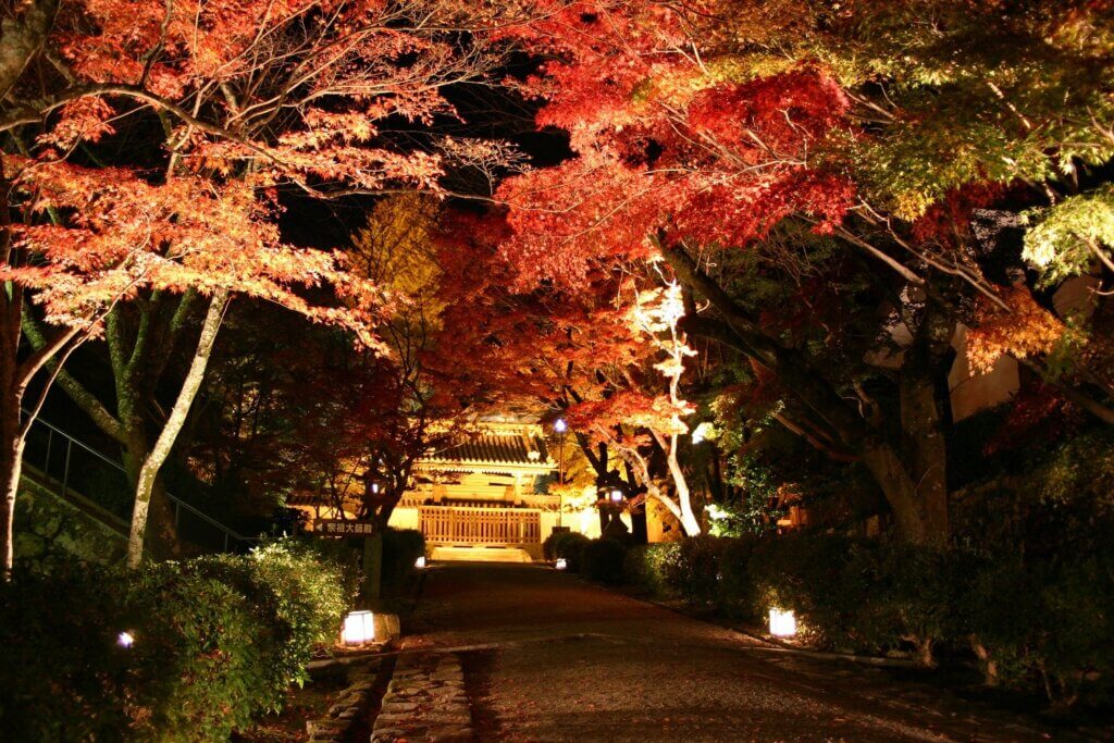 石山寺を彩るのは、小さな葉の「イロハモミジ」。古くから紅葉といえばこのイロハモミジなんだとか。近江八景では「石山秋月」とあげられる、秋の夜の石山寺の美しさ! 特別ライトアップで浮かび上がる千本以上の紅葉は圧巻です。