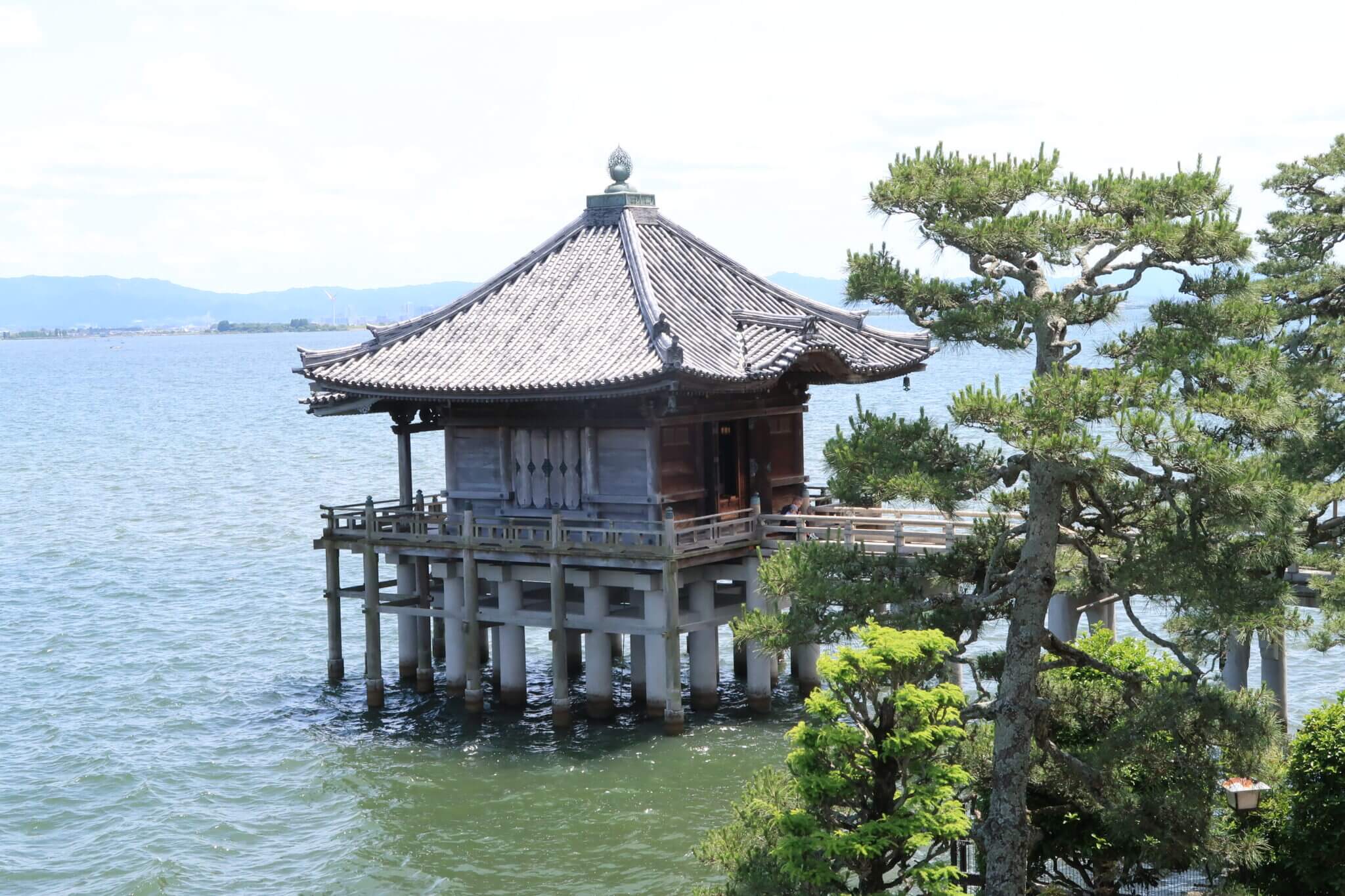 近江八景「堅田の落雁」で名高い浮御堂があるのは、海門山満月寺。平安時代、恵心僧都が湖上安全と衆生済度を祈願して建立しました。