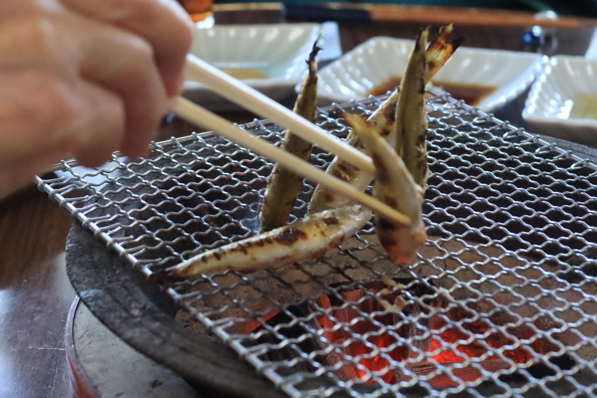 魚清楼といえば、ホンモロコの網焼き。ホンモロコとは琵琶湖の固有種(琵琶湖にしかいない魚)で、コイ科の魚の中では世界で一番うまいといわれている魚です。