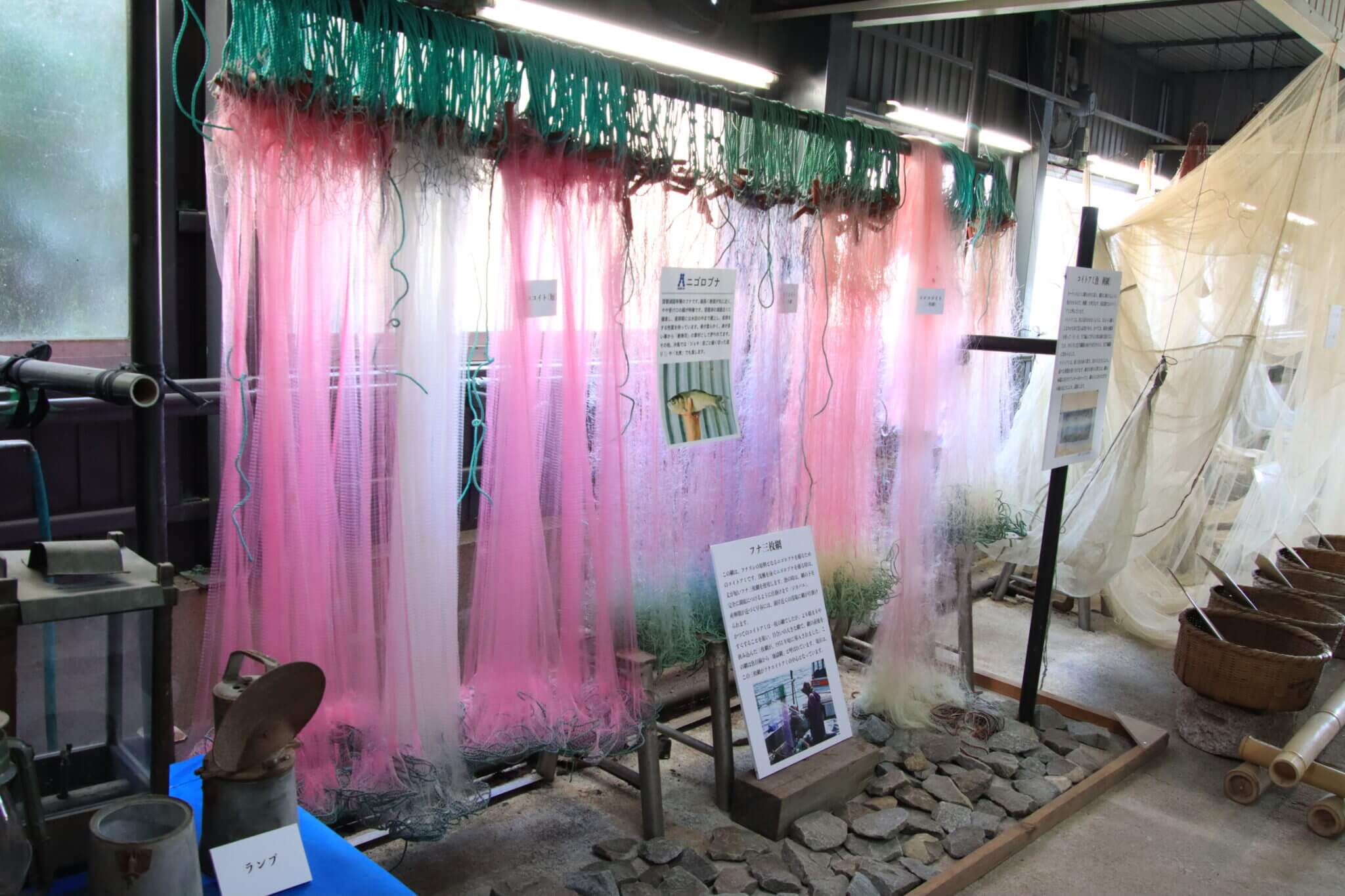 沖島では、おきしま資料館で沖島の漁業について学びます。