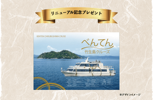 べんてんリニューアルを記念して、竹生島クルーズ(長浜港発)に乗船のお客様に、記念のポストカードをプレゼントいたします!
