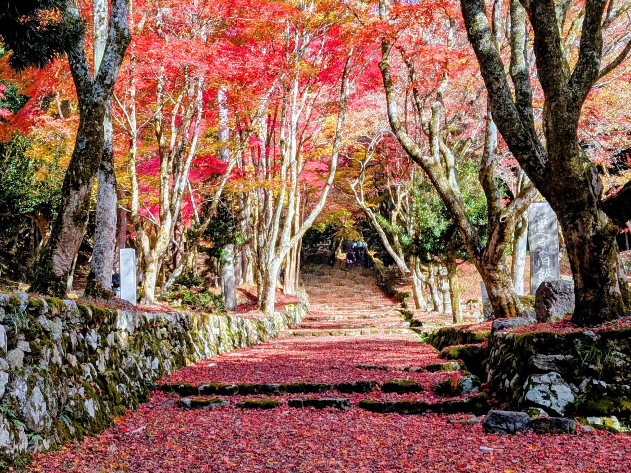 奈良時代開基の古刹で、かつては小谷城主浅井家、豊臣家の祈願所でもありました。現在は滋賀県屈指の紅葉の名所として知られています。参道の石段、苔むした石垣、約200本のモミジなどがフォトジェニック! 本尊「木造十一面観音立像」(平安時代・重要文化財)は与志漏神社境内の己高閣にて収蔵公開されています。
